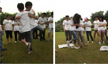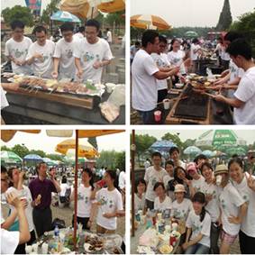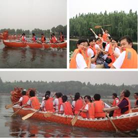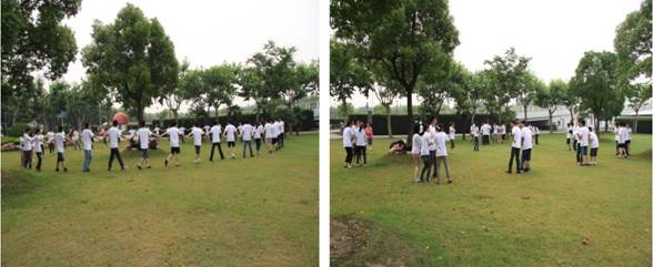 活动的第一个项目就是游戏环节。考虑到队员们来自不同室组并且还有很多一年级同学新面孔,组织方以两个小游戏来打破拘谨局面,增进成员间相互了解。破冰游戏之数字抱团,全体队员手拉手围成圈,按照主持人报出的数字组合在一起,未成抱团者即被淘汰,且要表演节目;破冰游戏之折报纸,两人一组以猜拳定胜负,失败组要将脚下报纸对折直至无法站立5秒钟为输。两个小小游戏别出心裁,打破了队员们彼此的陌生感。午间的烧烤活动,大家齐动手,配合默契,忙得不亦乐乎,放松了心情,增进了友情。午后进行的龙舟比赛考验着团队的合作能力,6支小组听着舵手的口号向前划行,队员们热情高涨,劲头十足。