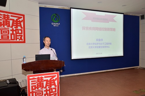 2017年9月29日下午,中国科学院上海药物研究所“药学前沿承嘏讲坛”第七讲在承嘏厅举行。北京大学来鲁华教授应邀作了题为“探索疾病网络控制新策略”的专题报告。蒋华良所长出席并主持报告会,药物所百余位科研人员和研究生参加了本次报告。