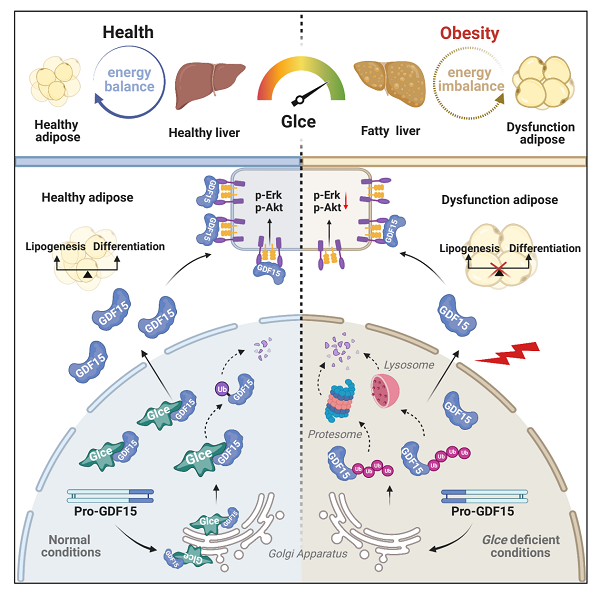 该研究揭示了一种新的代谢调控分子Glce介导肝脏-脂肪“cross-talk”信号传导调节能量稳态的重要作用,并加深了人体肝脏中Glce与肥胖或NAFLD/NASH等代谢综合性疾病相关性的理解,提示了Glce及其介导的GDF15信号通路或可成为对抗肥胖的潜在靶点。