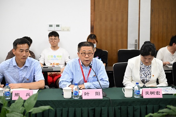 会上,叶阳对上海市主题教育第十一指导组莅临表示欢迎,并对本次交流提出推动双方高质量发展的期望。随后,双方主题教育课题联络员药物所党委办公室主任方婷、专利所党委办公室副主任王宇皓分别就各单位党建引领的具体举措、特色党建科研融合组织模式等进行主题汇报。