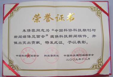自2007年1月中国科协科技期刊与新闻媒体见面会正式启动以来,《中国药理学报》朱倩蓉副编审认真选题,积极组织每月一期的科技新闻稿,三年来共有28篇科技新闻稿入选,获得中国科协和中国科技新闻学会的好评,也获得了撰稿专家的好评。
