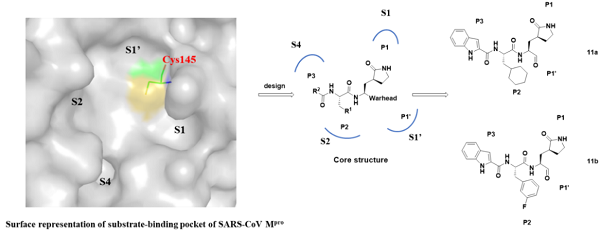 图1 SARS-CoV-2主蛋白酶抑制剂的设计策略及化合物11a和11b的化学结构