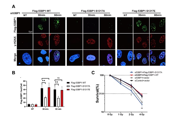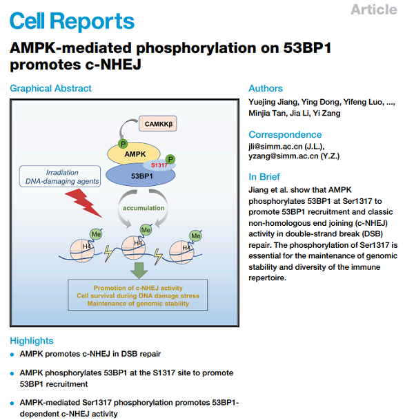 AMPK介导的53BP1-Ser1317位点的磷酸化促进DNA损伤修复和基因组稳定性