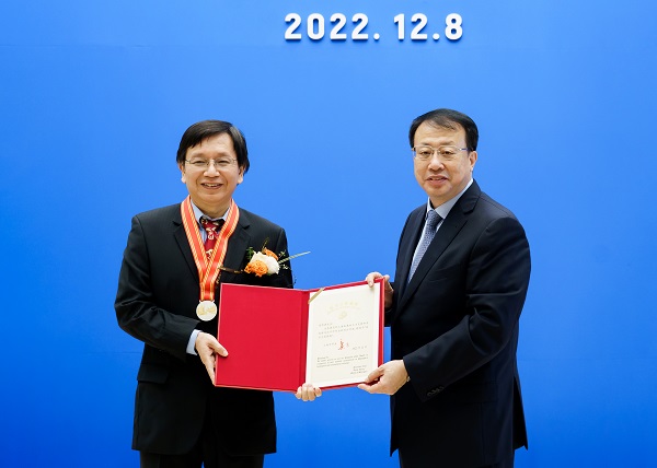 2022年12月8日上午,2022年度上海市“白玉兰荣誉奖”颁授仪式在上海市人民政府举行。法国籍人士安东尼奥·杜雅特、新加坡籍人士黄志源获“上海市荣誉市民”称号,意大利籍人士卡西莫·斑比等10人获“白玉兰荣誉奖”, 50位外籍人士荣获 “白玉兰纪念奖”。上海市市长龚正为获奖者及代表颁授奖章、证书,并会见了“荣誉市民”。其中,上海药物所徐华强研究员获本年度“白玉兰荣誉奖”。
