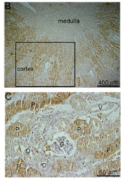 图1 NQO1主要分布在肾皮质近曲小管细胞内 图2 抑制剂双香豆素抑制AAI在肾脏内的还原代谢