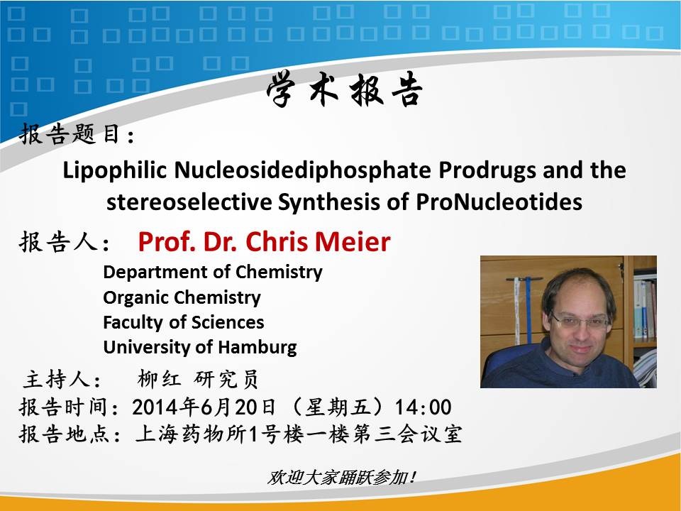 第27期:主讲人:Dr.Chris Meier;时间:2014年6月20日(星期五)14:00;地点:第三会议室