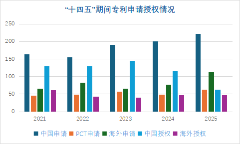 强化知识产权保护,培育高质量高价值专利加强知识产权全过程管理和质量把控,知识产权创造、保护和转化运用态势良好,为实现创新发现的价值最大化奠定了坚实基础。“十四五”期间,累计申请国内专利935件、PCT263件、海外专利405件;获得国内专利授权586件,海外专利授权239件。发明专利申请量和授权量均在国内生物医药领域名列前茅。