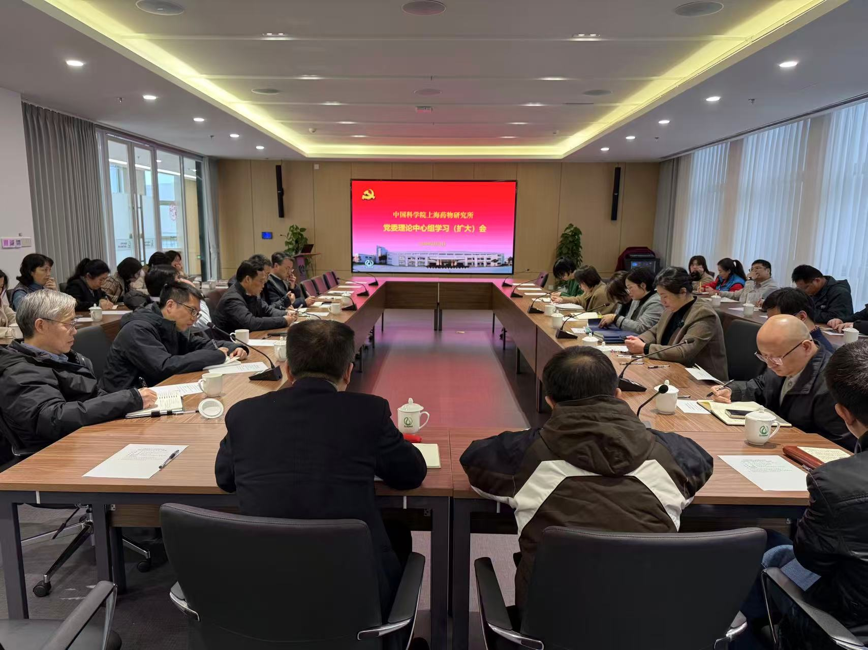 2月26日,上海药物所召开党委理论中心组学习(扩大)会,专题学习研讨院2026年度工作会议精神。所领导、党委委员、中层干部共40余人参加会议。党委书记叶阳主持会议。