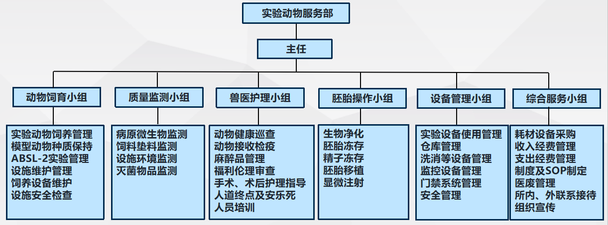 简介:综合服务小组主要负责部门内的耗材设备采购、饲养管理费的核算、支出经费的管理、实验动物标准操作规程的制定、及组织宣传等工作。