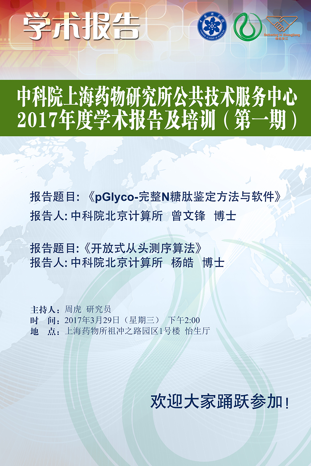 中科院上海药物研究所公共技术服务中心2017年度学术报告及培训(第一期)