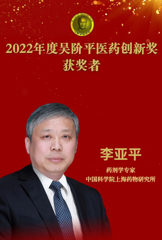 2023年6月11日,吴阶平医学奖、医药创新奖颁奖大会在首都医科大学礼堂隆重举行。第十二届全国政协副主席、中国科协名誉主席、吴阶平医学奖评审委员会主席、中国科学院院士韩启德,以及国内医药卫生领域的两院院士、著名专家、学者和有关嘉宾出席了颁奖大会。上海药物所李亚平研究员荣获2022年吴阶平医药创新奖。