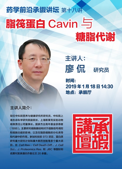 第292期:承嘏讲坛第十八讲:脂筏蛋白Cavin与糖脂代谢;主讲人:廖侃 研究员;时间:1月18日;地点:承嘏厅