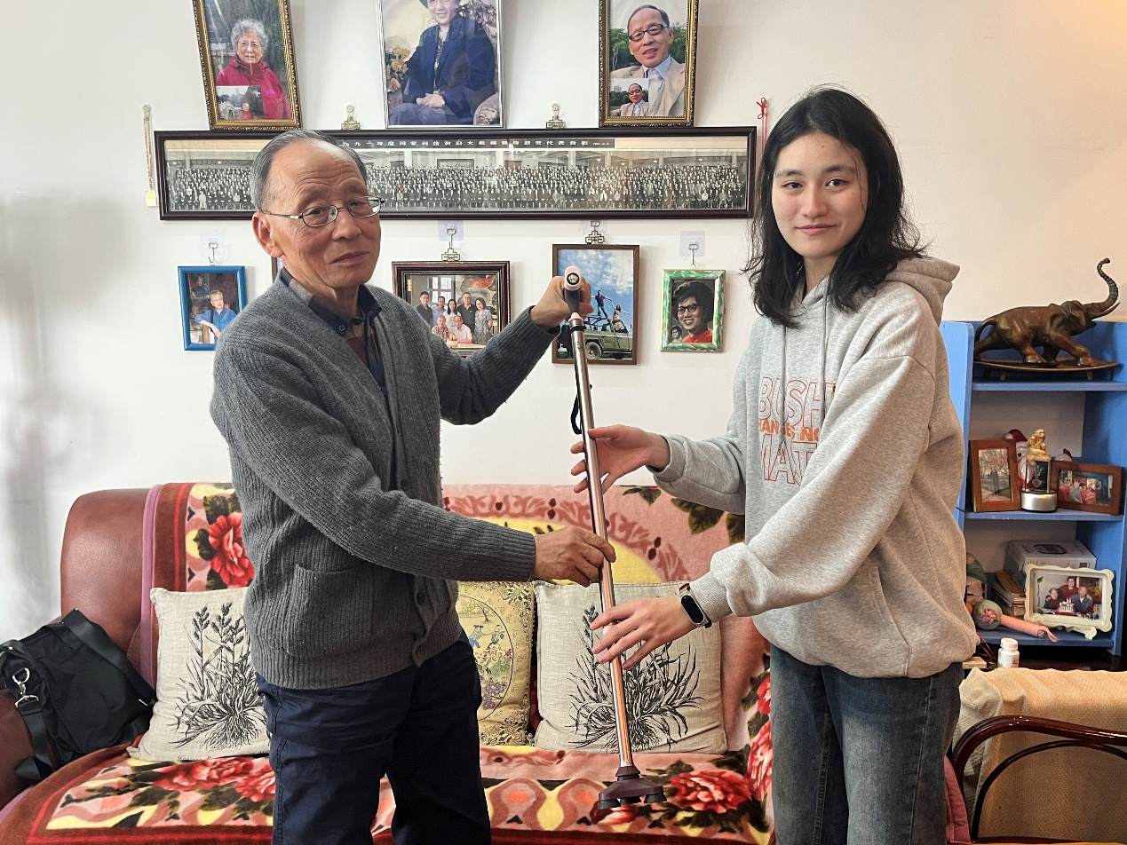 交流现场,研究生代表向金文桥敬献“金拐杖”,致敬老科学家的坚守与奉献,祝愿先生福寿安康。金文桥为学子们送上殷切寄语,勉励青年一代传承科研薪火,勇攀科技高峰,以实际行动为我国药学事业发展贡献力量。